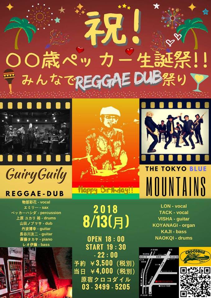 HOME > EVENT > EVENT 8.13 (mon) 祝!〇〇歳ペッカー生誕祭!! みんなでReggae Dub夏祭り 2018/06/17 日本音楽界の重鎮、ペッカー橋田氏の誕生パーティーを開催致します。お盆で平日となりますが、盛大にお祝いいたしましょう!! Facebook Page Open 18:00Start 19:30- 22:00予約 3500円(税別)当日 4000円(税別) 原宿クロコダイル〒150-0001 東京都 渋谷区神宮前6-18-8 ニュー関口ビルB1TEL : 03-3499-5205 -EVENT Twitter Facebook Google+ Pocket B!はてブ LINE